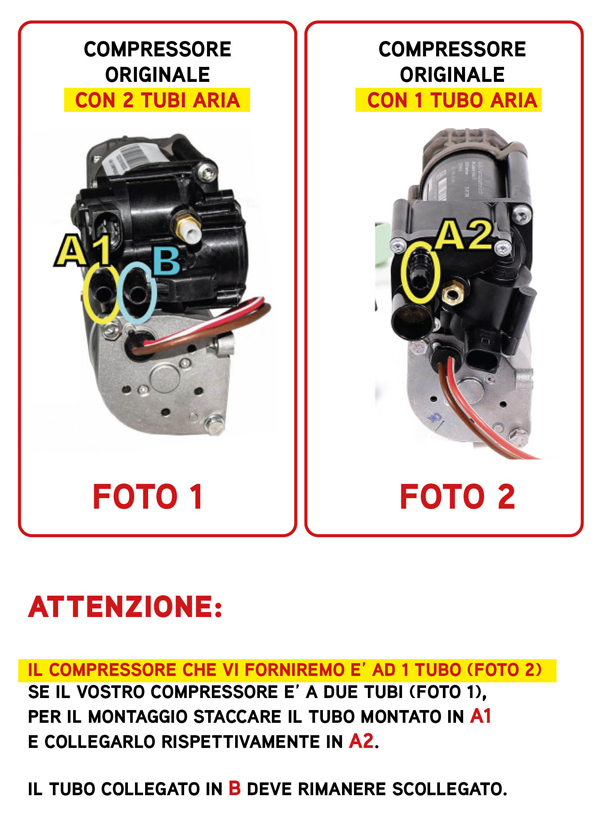 Un buco anche piccolissimo nella molla ad aria, nelle valvole di regolazione altezza o nell’impianto, faranno in modo che l’impianto si scarichi ed il compressore si attivi più del necessario per riportarlo in pressione, più è grosso il buco e più si scaricherà velocemente l’impianto. Quindi controllare attentamente che non ci siano perdite di nessun tipo.